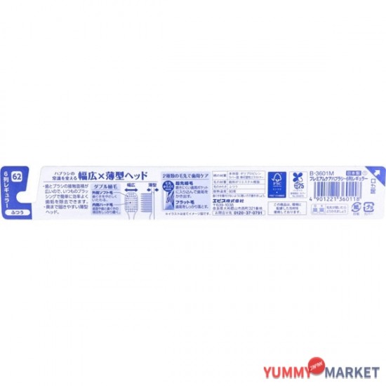 ebisu 프리미엄 케어 칫솔, 6 행 일반, 일반 B-3601m 1 조각